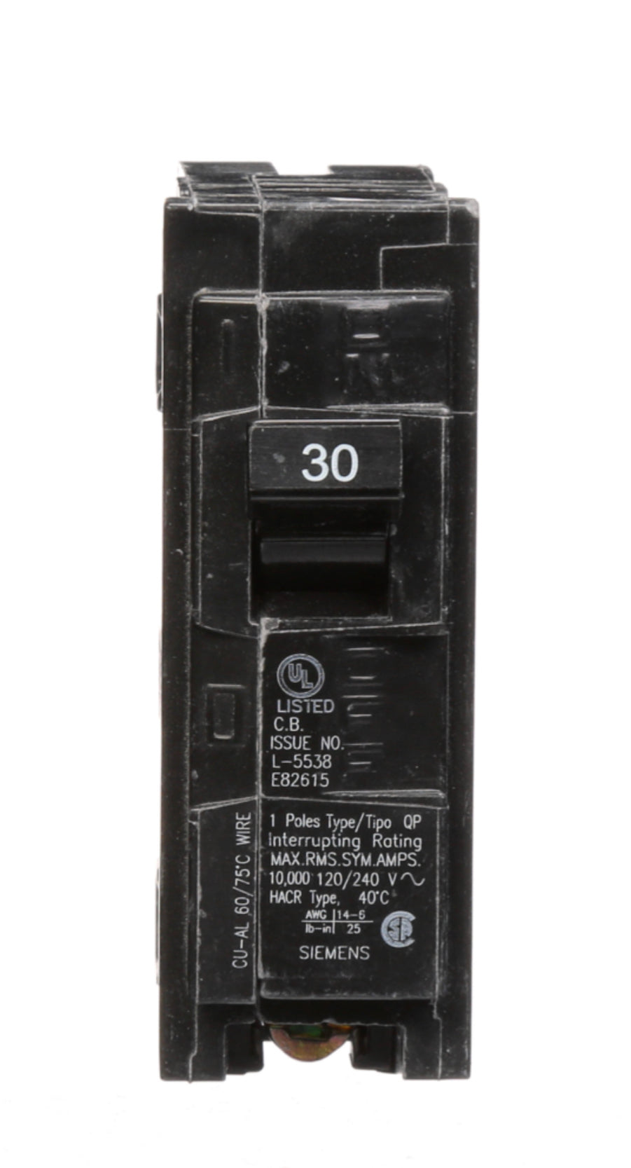 SIEMENS Q130 Single-Pole Type QP 30-Amp Circuit Breaker